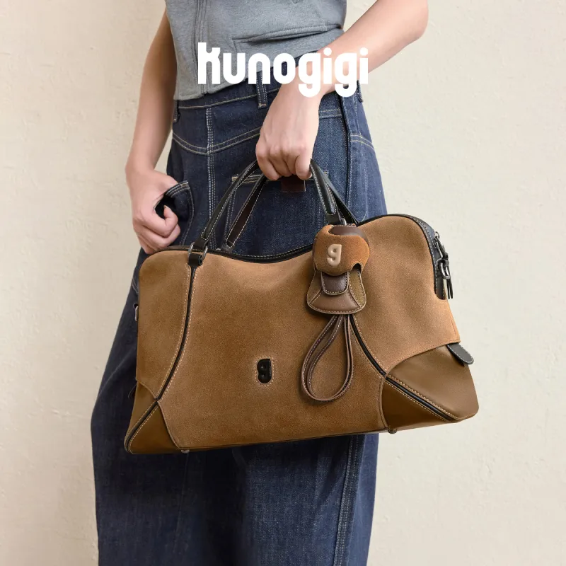 KUNOGIGI 스플릿 소 가죽 가방 L 남녀공용 스웨이드 체스트넛 브라운 - POIZON