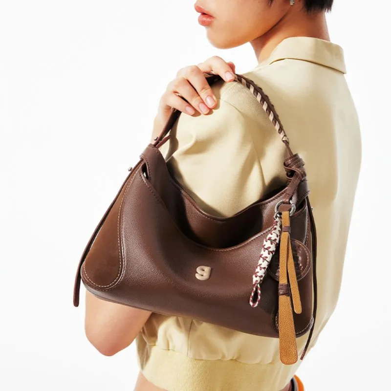 KUNOGIGI 풀그레인 소가죽 야구 스포츠 호보 백, 스몰 추천 사이즈 핸드백, 숄더 백 여성 배색 - POIZON