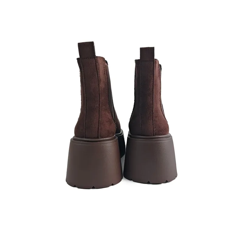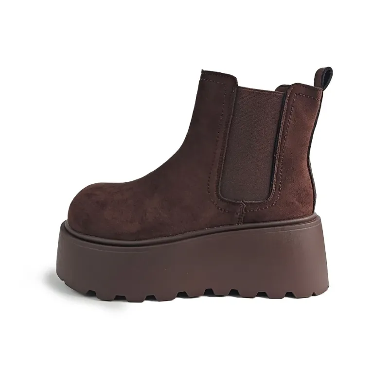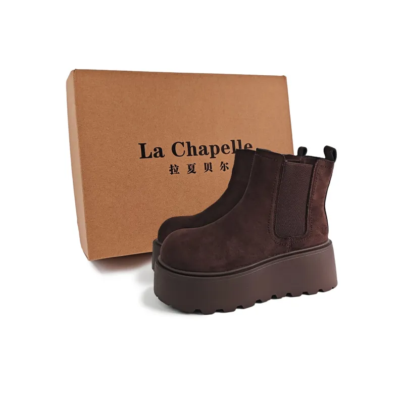 라 샤펠 브리티시 스타일 통굽 키높이 옐로우 부츠 단목 첼시 부츠 7cm 여성 - POIZON