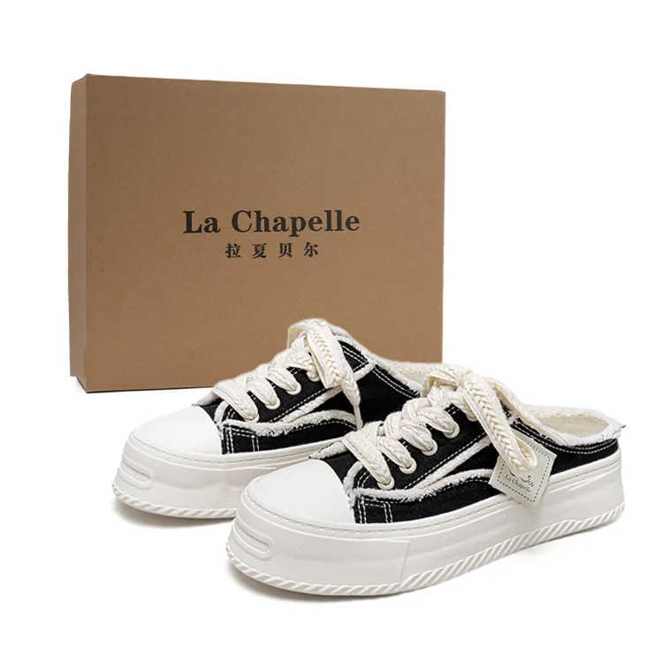 라 샤펠 고무 밑창 내마모성 미끄럼 방지 클로즈드 토 슬리퍼 여성