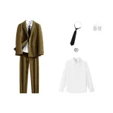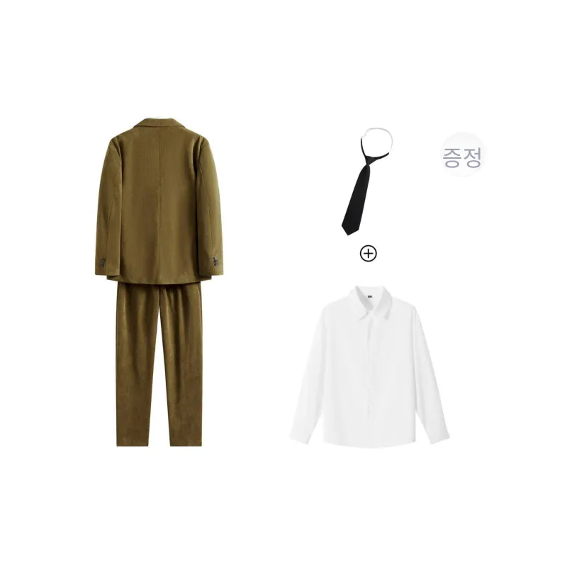 세트:카키 비즈니스 수트 (넥타이+블라우스 포함)