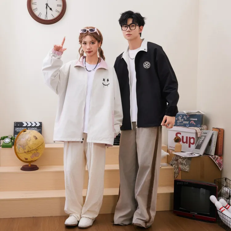 의류 세트 (애프리콧 양면 3줄 재킷 (791) + 블랙 캐주얼 팬츠)