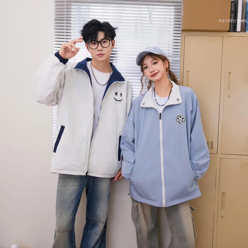 세트:의류 세트 (라이트 블루 재킷 + 블랙 캐주얼 팬츠)