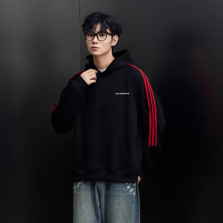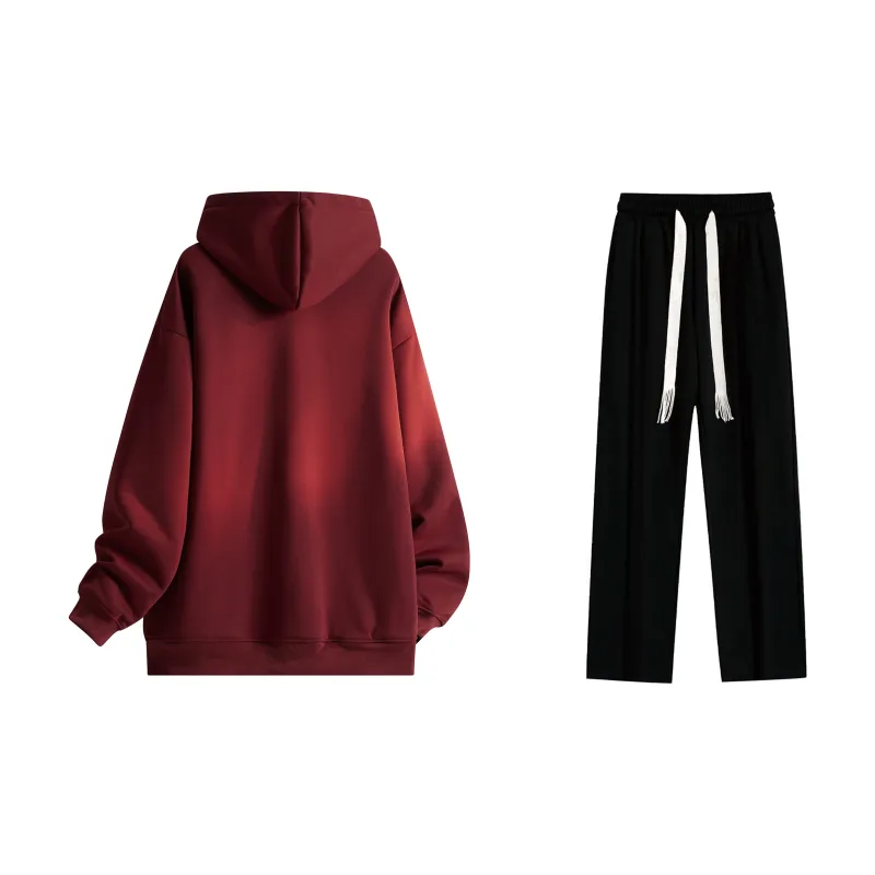 기모 안감 선택 가능 의류 세트 (버건디 기모 후드티 & 스웨트셔츠 + 블랙 기모 캐주얼 팬츠)