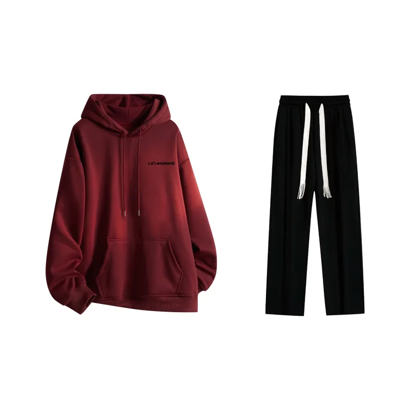 의류 세트 (버건디 스웨트셔츠 + 블랙 캐주얼 팬츠)
