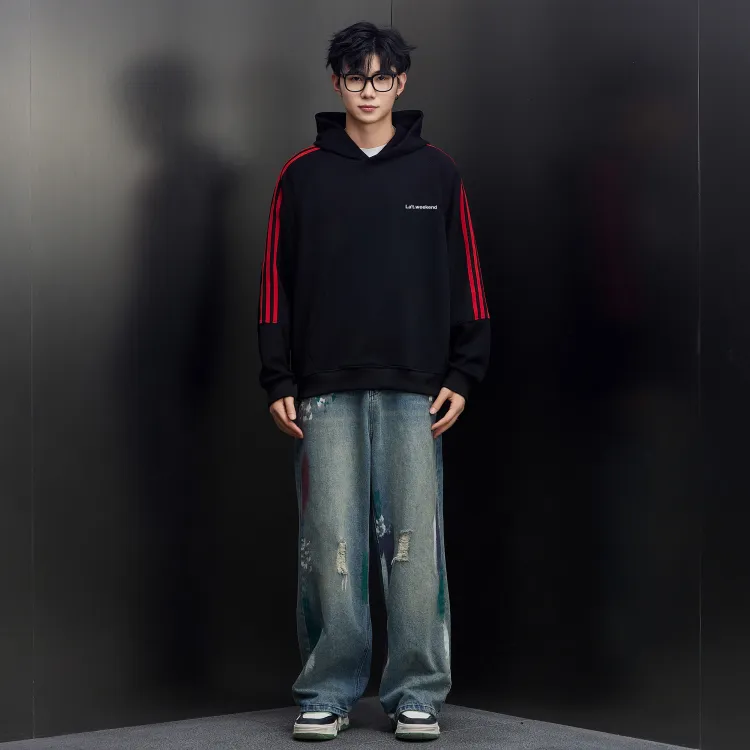색상:의류 세트 (버건디 스웨트셔츠 + 블랙 캐주얼 팬츠)