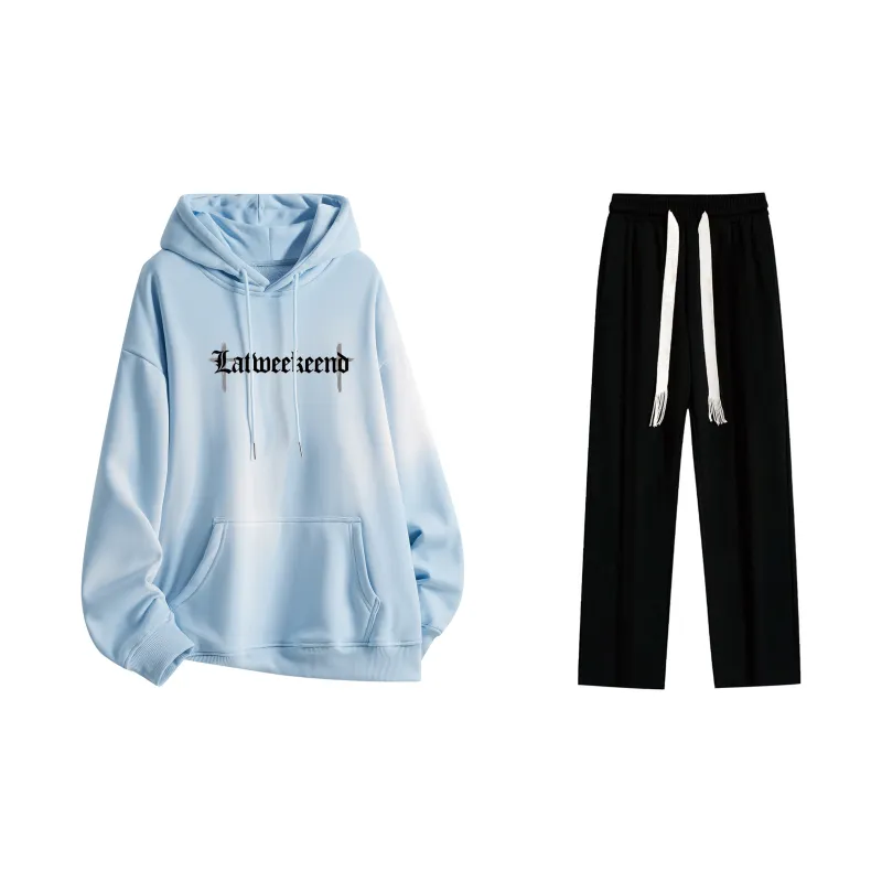 세트:의류 세트 (아이스 블루 맨투맨 + 블랙 캐주얼 팬츠)