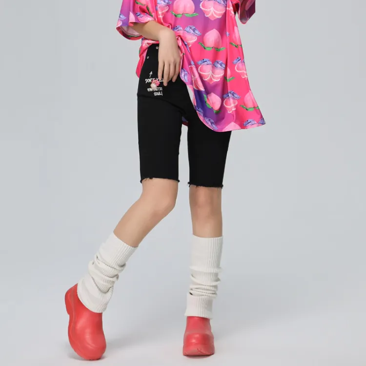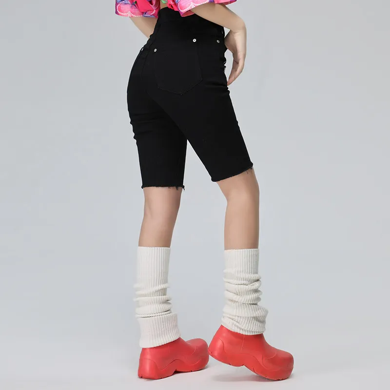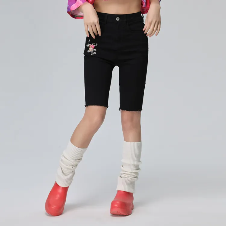 LALABOBO 블랙 데님 여성 데님 반바지 - POIZON