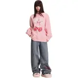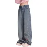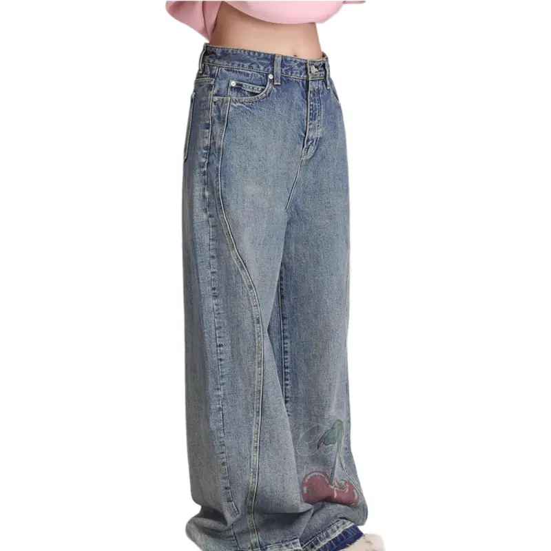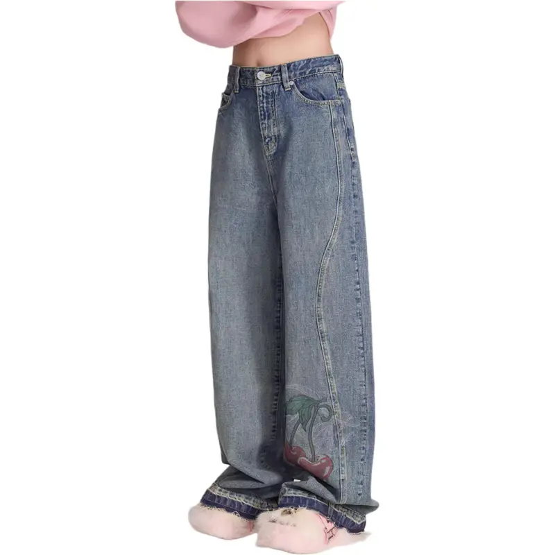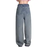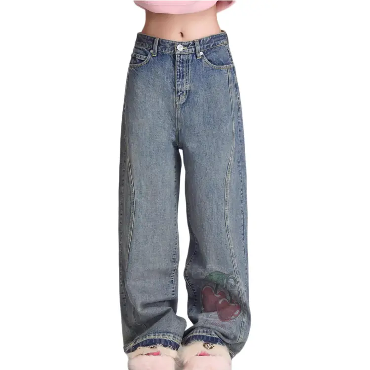 LALABOBO 미디엄 블루 화이트 여성 청바지 - POIZON