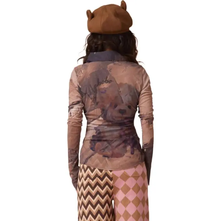 LALABOBO 커피 색상 여성 티셔츠 - POIZON