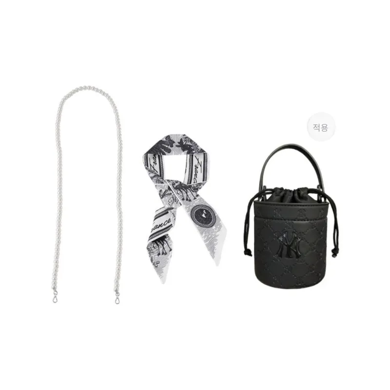 블랙 아크릴 조절 가능 숄더 스트랩 109-124cm + 나비 실크 스카프