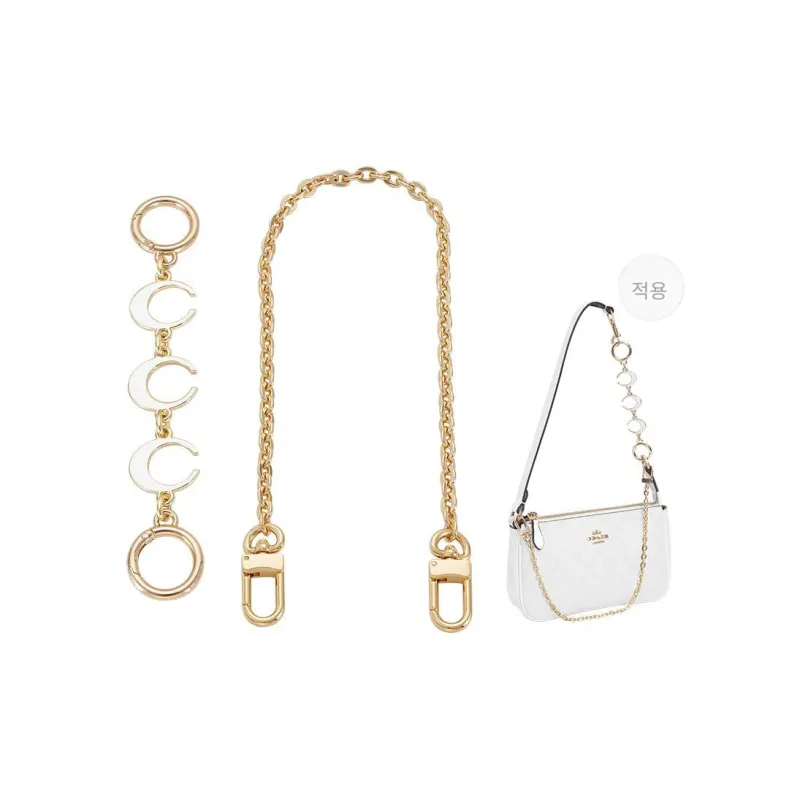 코치 1.1cm 넓이 글래시어 화이트 골드톤 잠금장치 90-120cm + 장식 체인 40cm