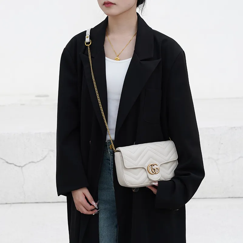 구찌, 블랙 가죽 골드 체인 46cm (휴대용)