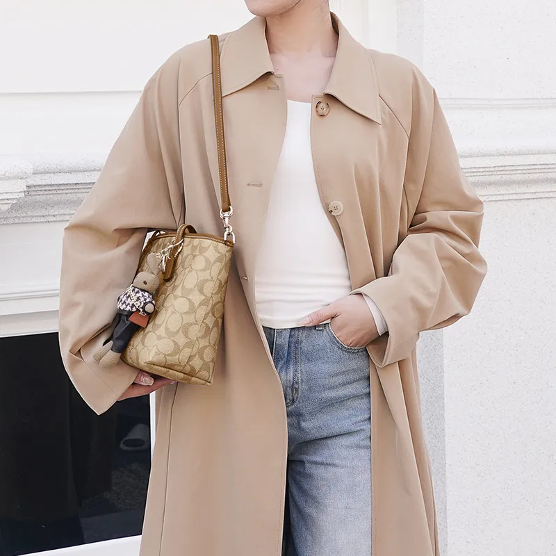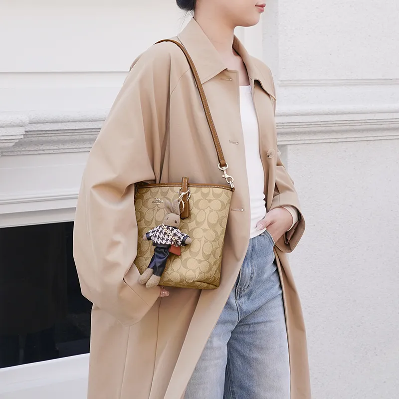 Lan Bao Fan 소가죽 크로스바디백/와이드 스트랩 미니 쇼핑백 스트랩 포함 여성 밀크 티 - POIZON