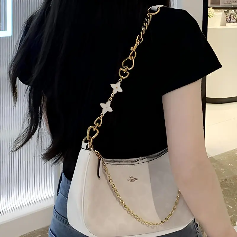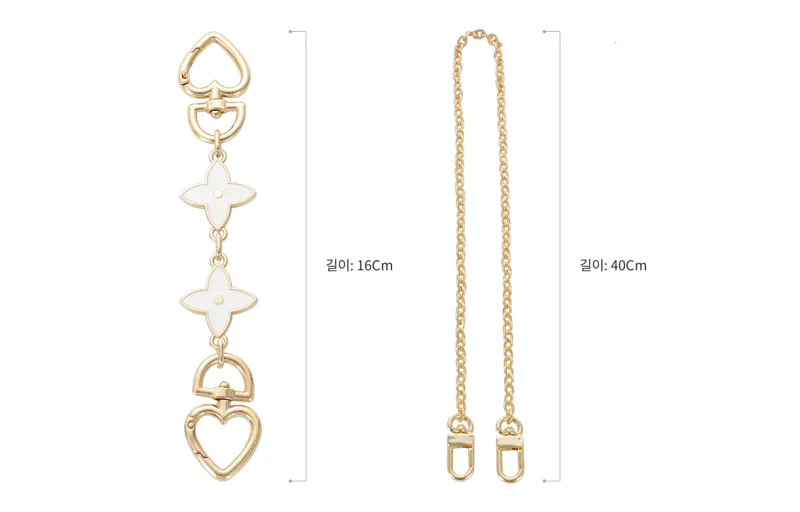 Lan Bao Fan 가방 스트랩 골드 톤 장식 체인 + 화이트 네잎 클로버 연장 체인 여성