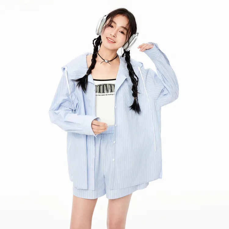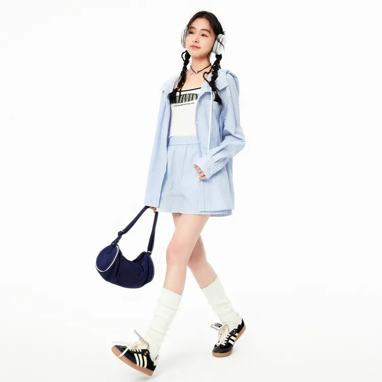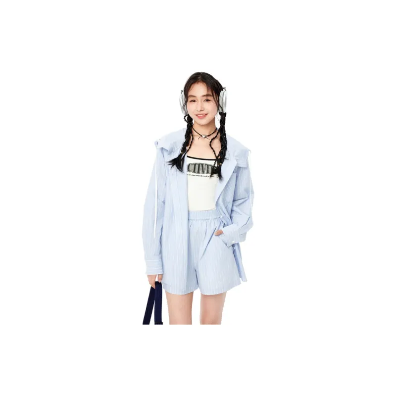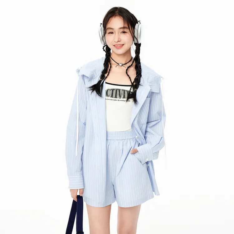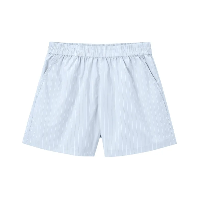 LEDIN 블루 스트라이프 패턴 여성 캐주얼 반바지 - POIZON