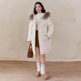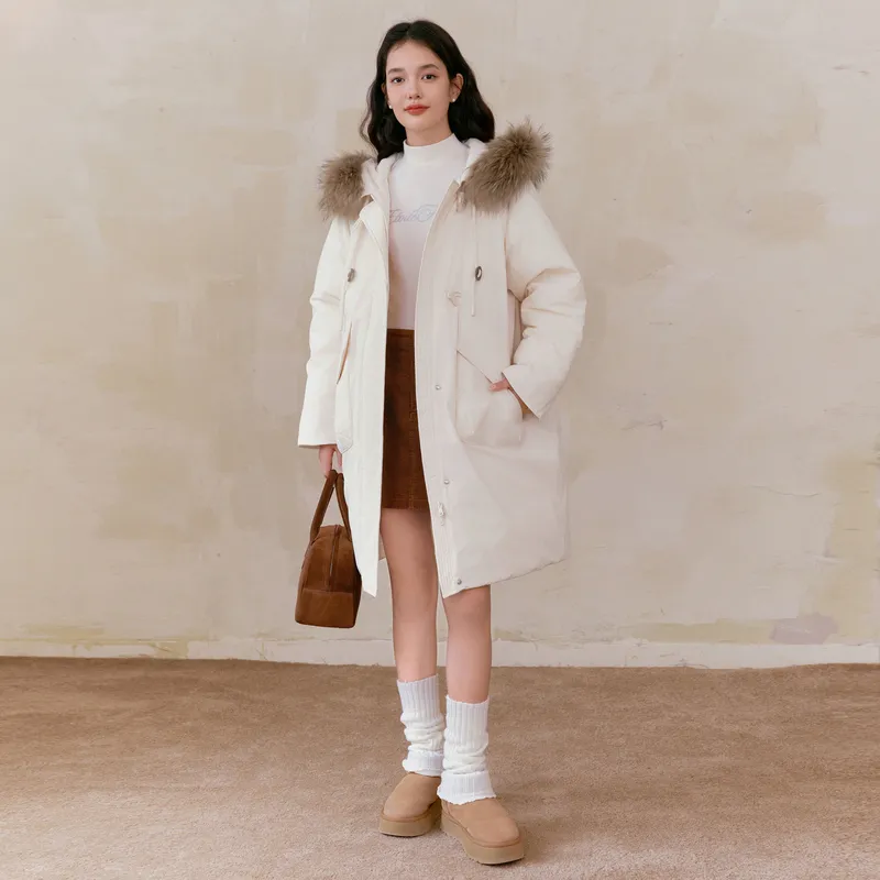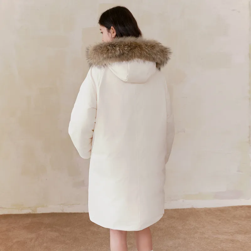 원단 성분: 100% 폴리에스터 (비섬유 소재 제외) 안감 성분: 100% 폴리에스터 부분 충전재: 100% 폴리에스터 본체 충전재: 화이트 오리털 다운 함량: 90% 모피 스트라이프 패턴: 너구리 모피