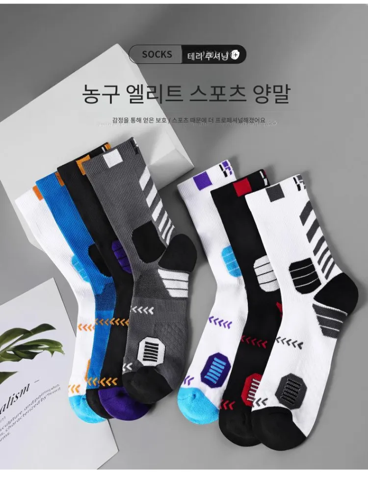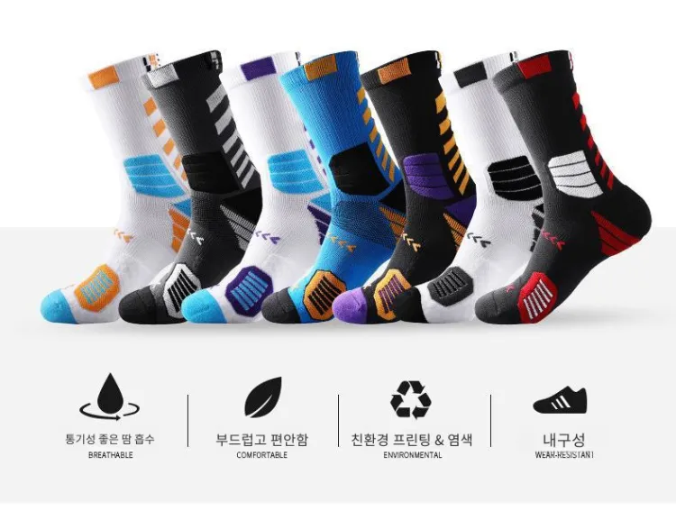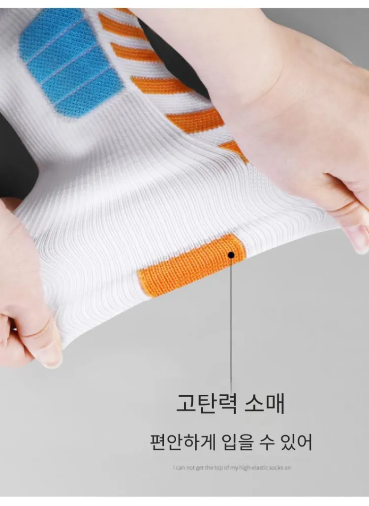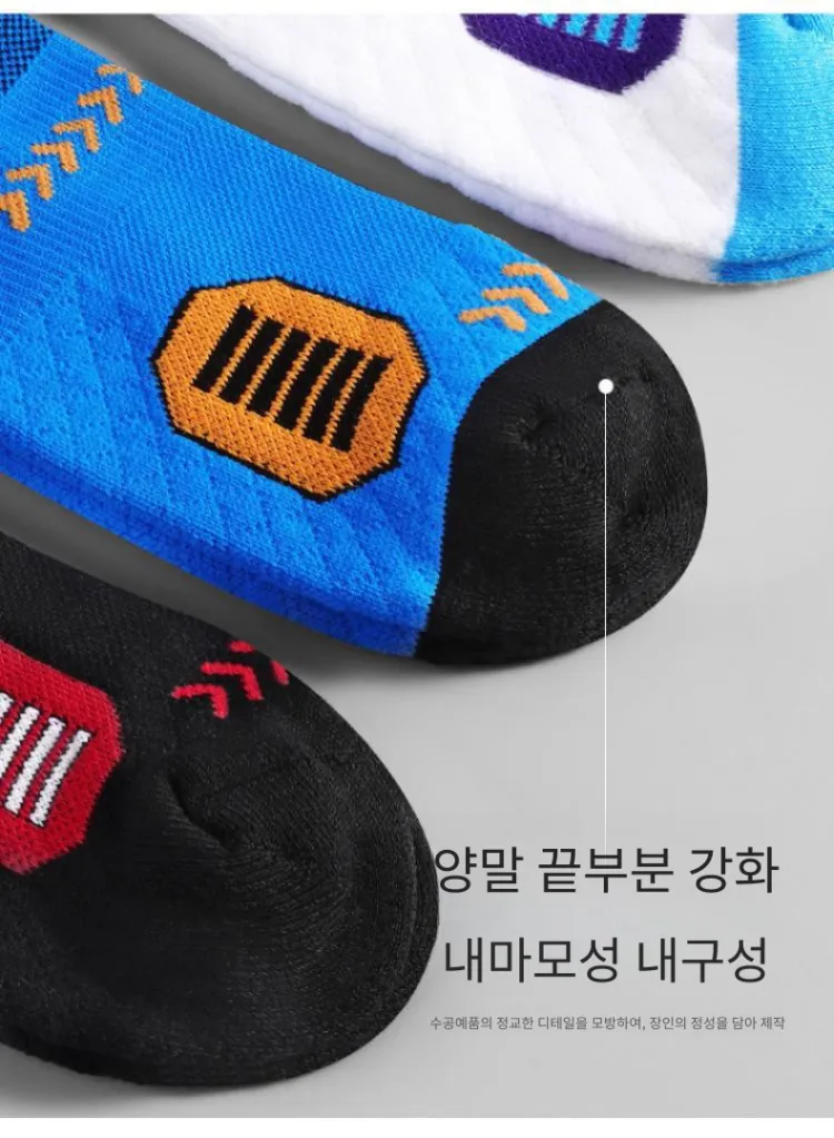 LDK185 스타일 농구 양말 5팩 세트 (화이트 블랙/화이트 옐로우/화이트 퍼플/블랙 퍼플/블랙 레드)