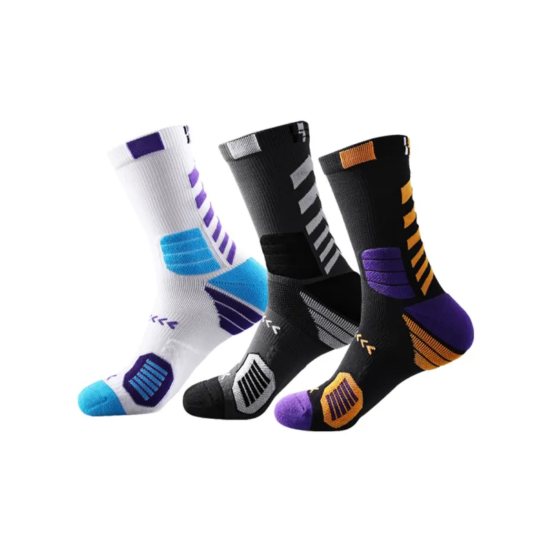 LDK185 스타일 농구 양말 3팩 세트 (화이트 옐로우/화이트 퍼플/블랙 퍼플)