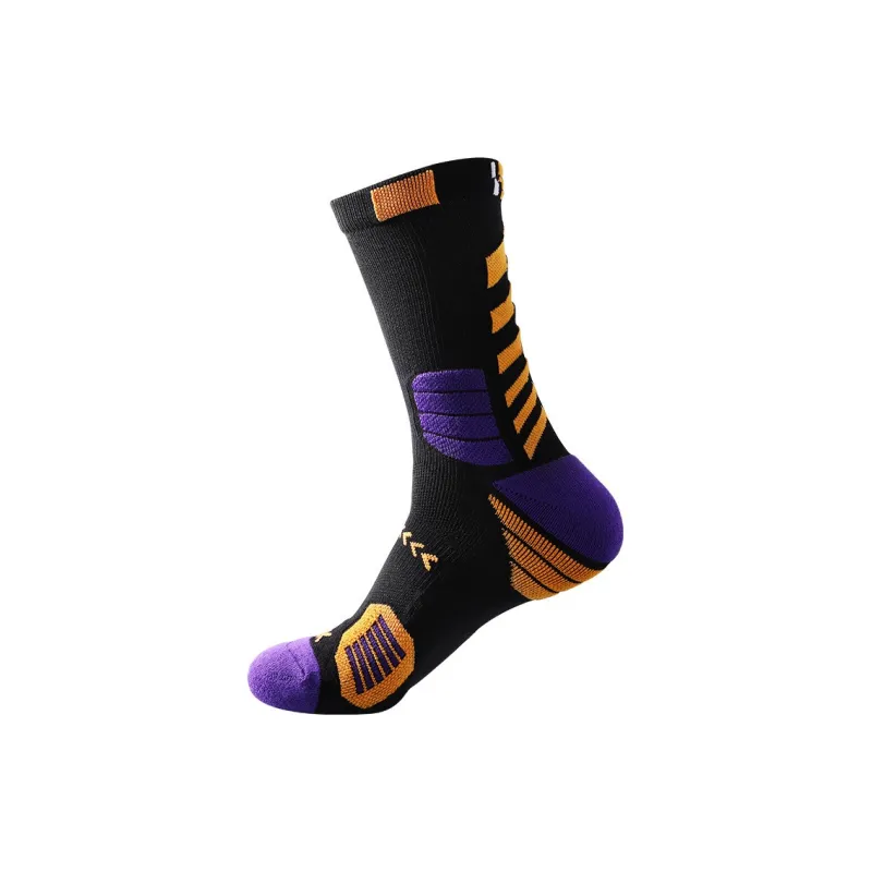 LDK185 스타일 농구 양말 5팩 세트 (화이트 옐로우/화이트 퍼플/다크그레이/블랙 퍼플/블랙 레드)