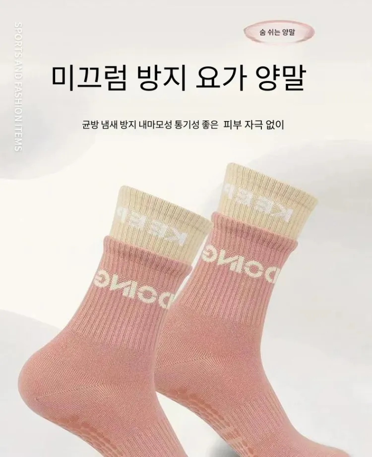 더블 소맷단 요가 양말 2팩 (핑크+퍼플)