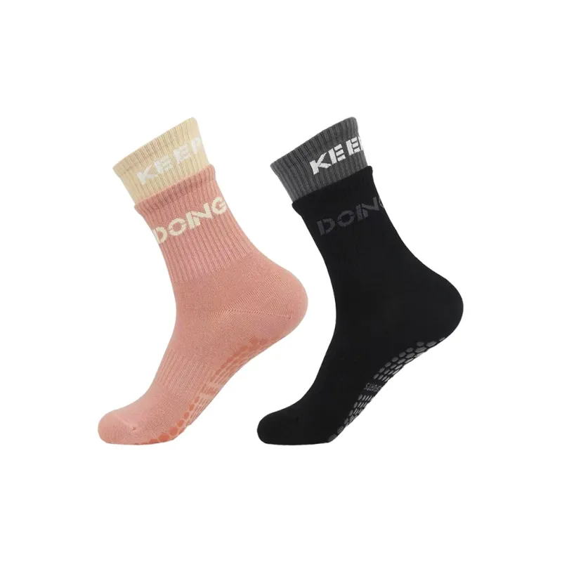 더블 소맷단 요가 양말 2팩 (핑크+블랙)