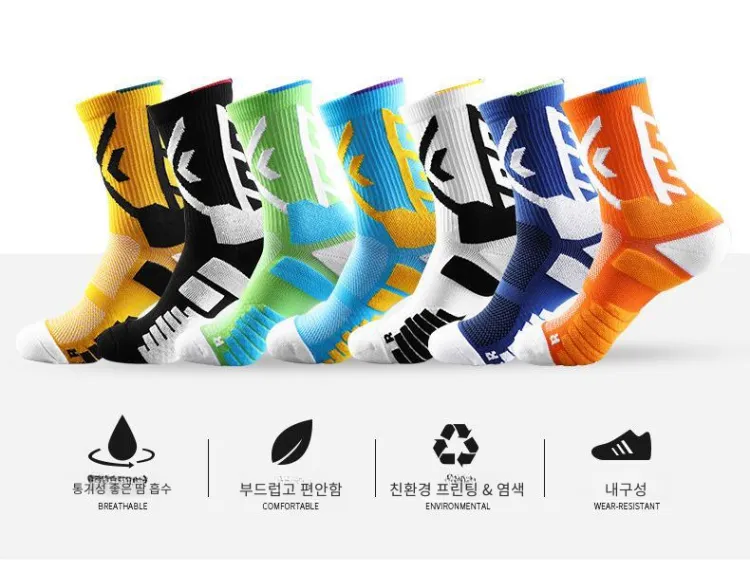 LDK183 스타일 농구 양말 6팩 (화이트/오렌지/진저 옐로우/다크 블루/스카이 블루/그린)