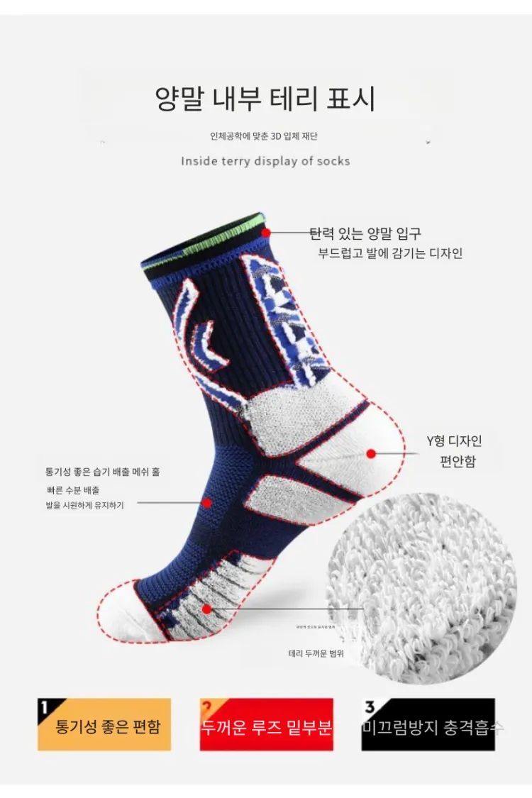 LDK185 모델 농구 양말 (다크 블루 3팩 세트)