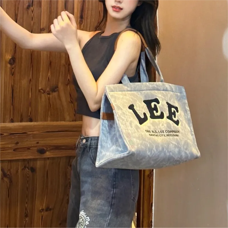 리 원단 숄더 백, 토트, 핸드백 L 여성 워시드 그레이 - POIZON