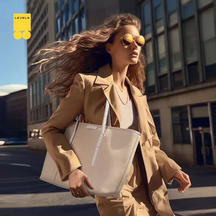 LEVEL8 인조 가죽 가방 레귤러 여성 크레센트 화이트/모카 - POIZON