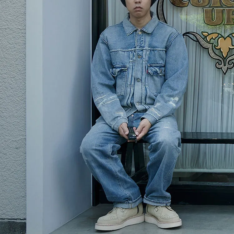 인간이 만든 리바이스 블루 남녀공용 데님 자켓