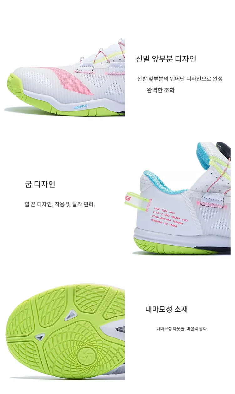 안감 쿠셔닝, 미끄럼 방지, 내마모성 기능성 로우탑 탁구화 남녀공용 화이트 그린 핑크 - POIZON