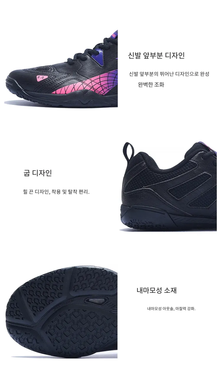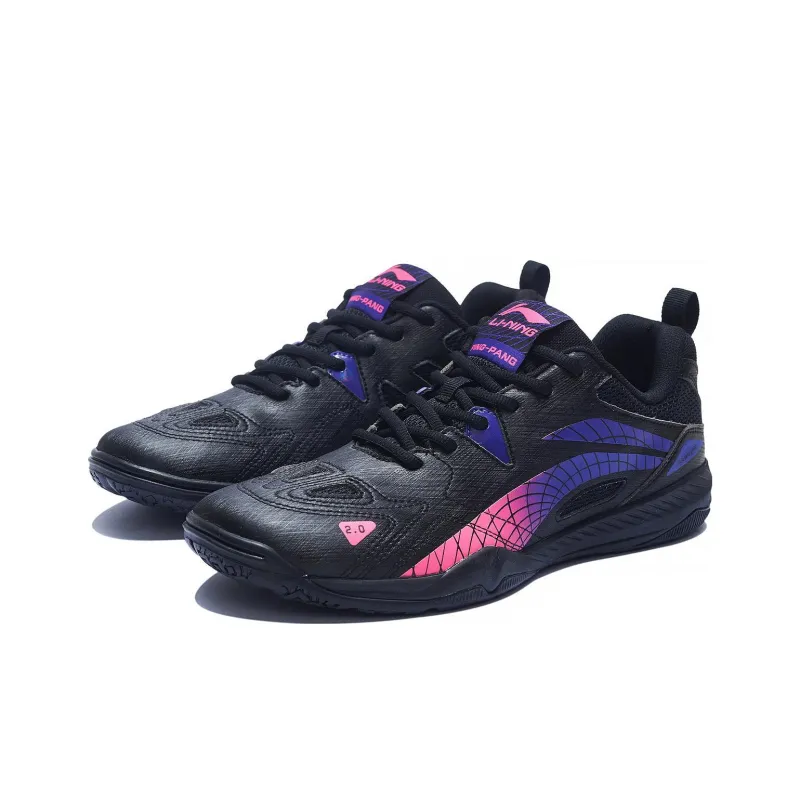 안감 쿠셔닝, 미끄럼 방지, 내마모성 기능성 로우탑 탁구화 남녀공용 블랙 퍼플 - POIZON