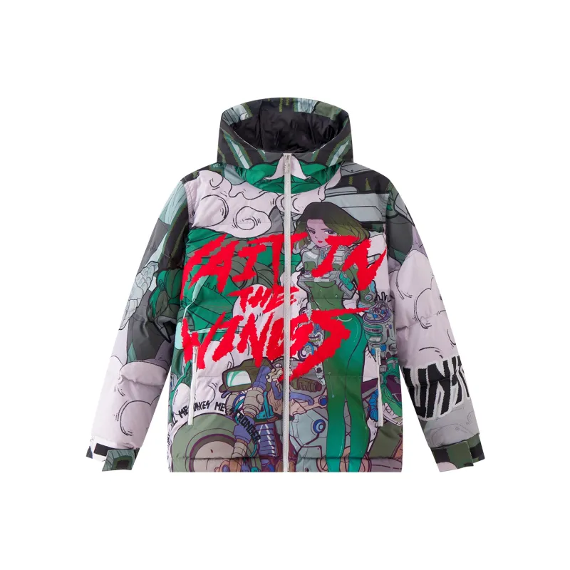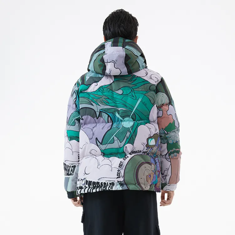 LNG 링 X Li Ning 그린 프린팅 남녀공용 다운 재킷 - POIZON