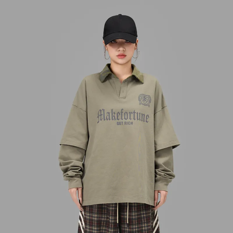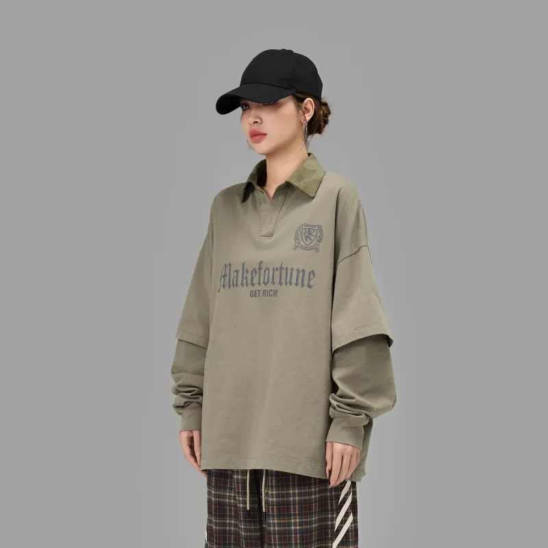 LIUREGALI 카키 남녀공용 맨투맨 - POIZON