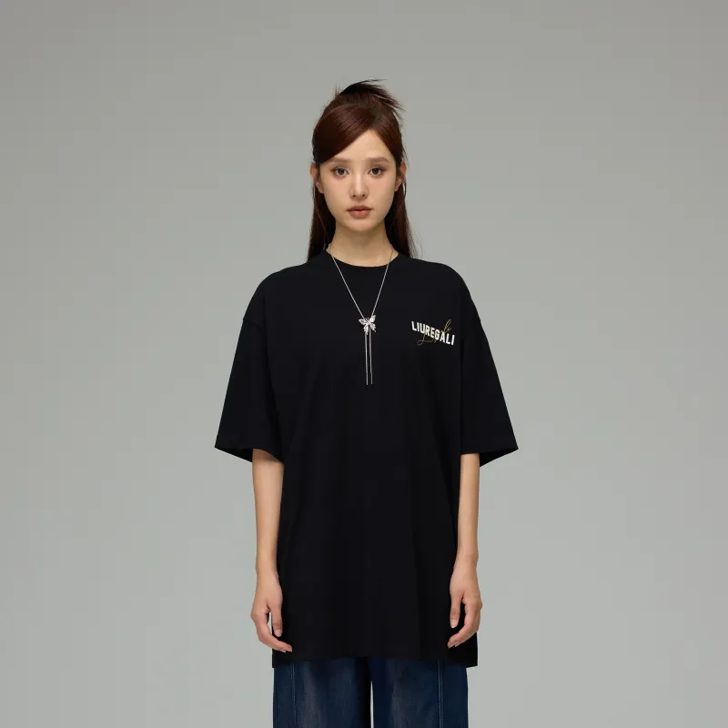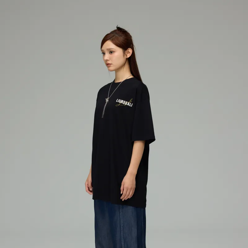 LIUREGALI 블랙 남녀공용 티셔츠