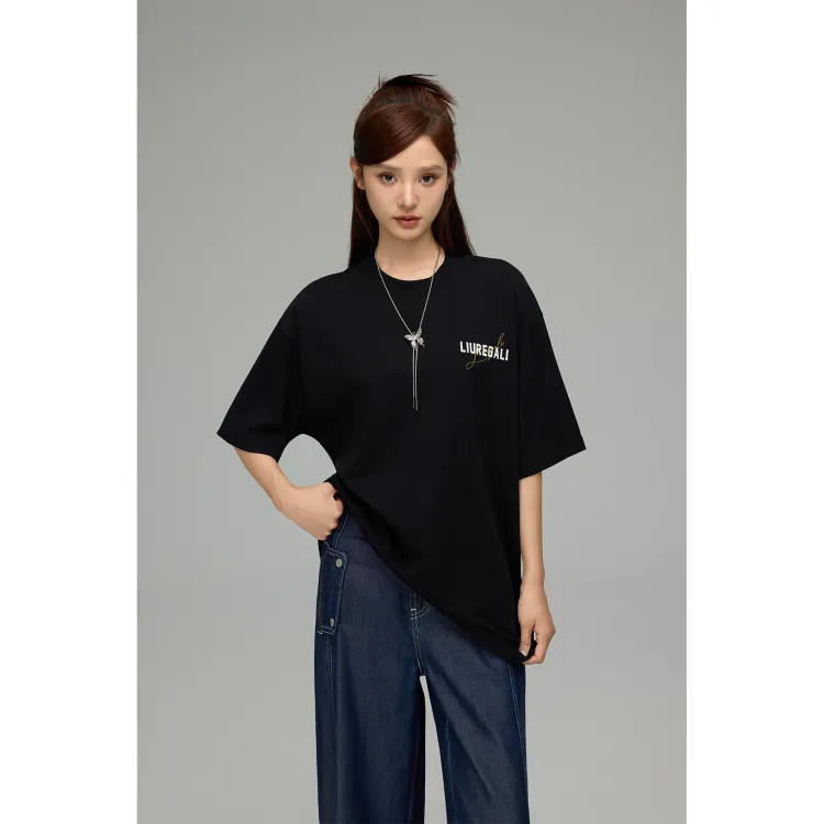 LIUREGALI 블랙 남녀공용 티셔츠 - POIZON