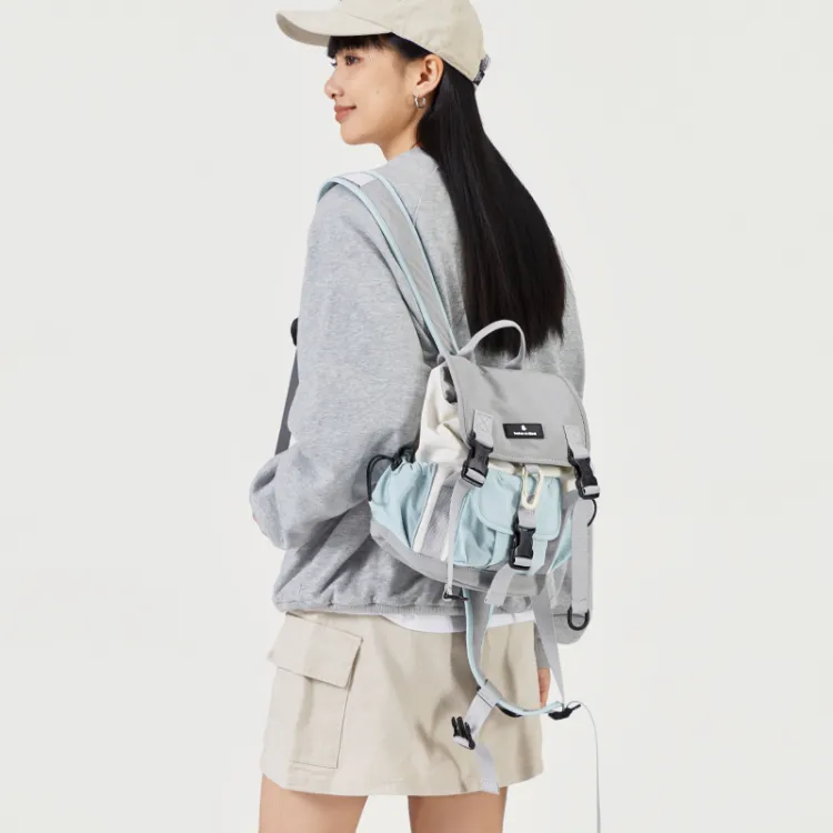 LIVEBOX 생중계 나일론 백팩 소형 백팩 S 여성 그레이 그린/그레이 퍼플/다크그레이 - POIZON
