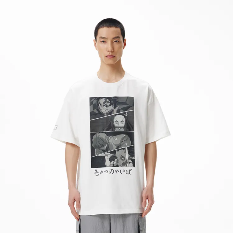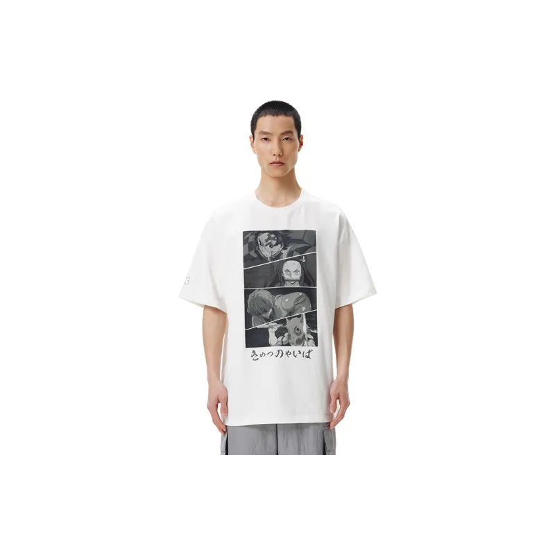 LNG X 데몬 슬레이어 화이트 남녀공용 티셔츠 - POIZON