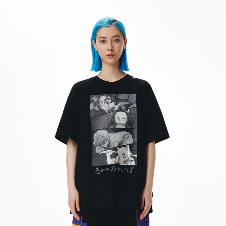 LNG x GUIMIEZHIREN,LIANMINGKUAN 티셔츠 남녀공용 블랙