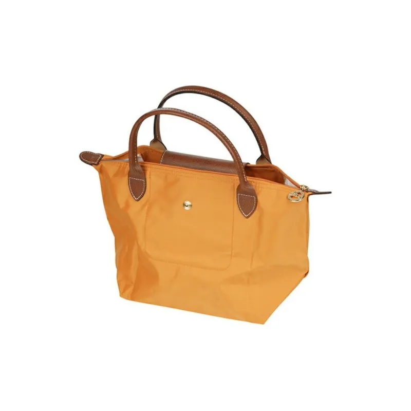 롱샴 르 플리아주 재활용 캔버스+가죽 트림 만두백 핸드백 S 여성 오렌지 - POIZON