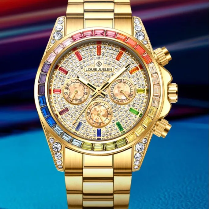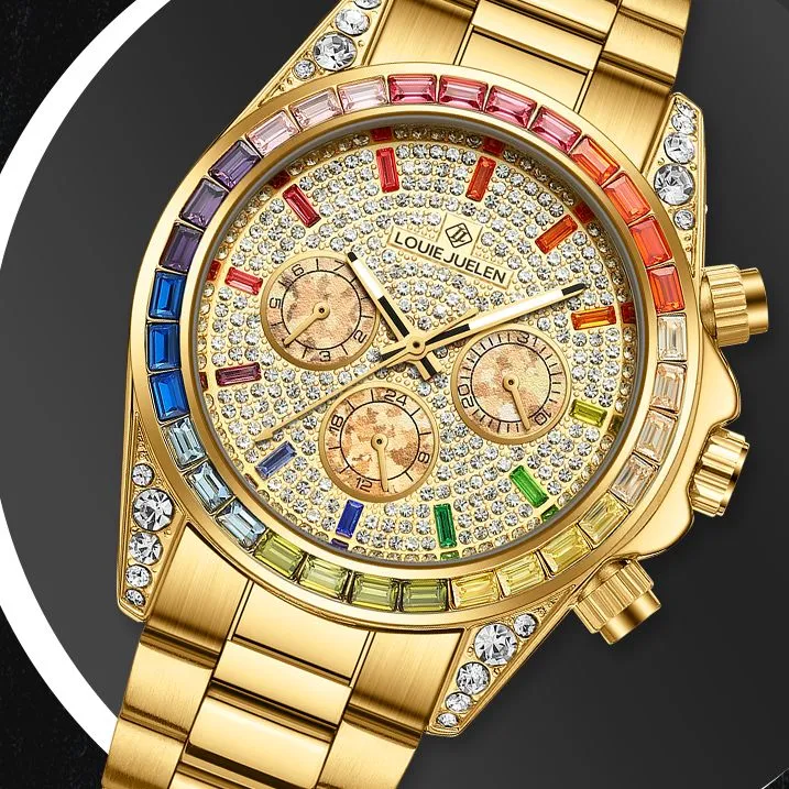 다이얼 색상:골드 케이스 골드 다이얼 컬러풀한 스틸 시계줄