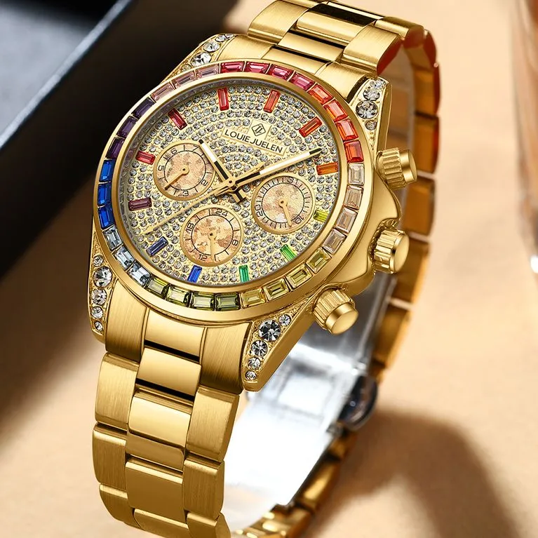 루이 주엘렌 메커니컬 무브먼트 스틸 스트랩 중국 시계 남성용 시계 골드 다이얼