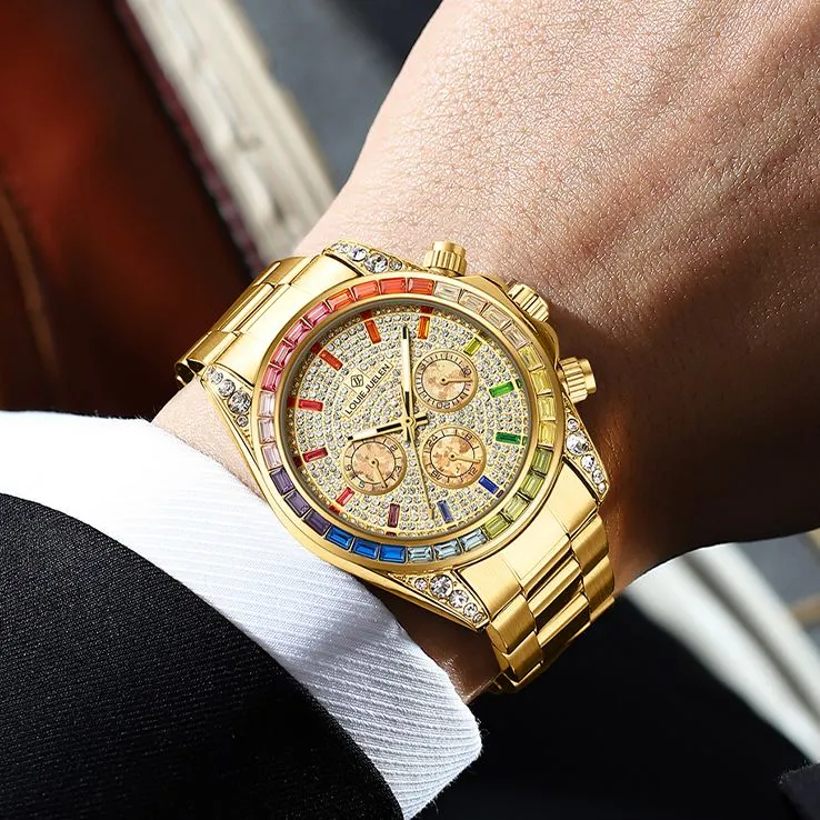골드 케이스 골드 다이얼 컬러풀한 스틸 시계줄