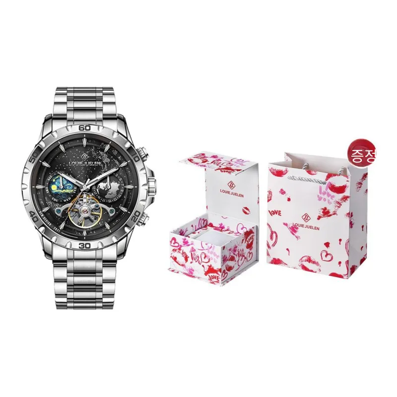 다이얼 색상:마음 설렘 박스-9405 실버 케이스 블랙 다이얼 스틸 시계줄
