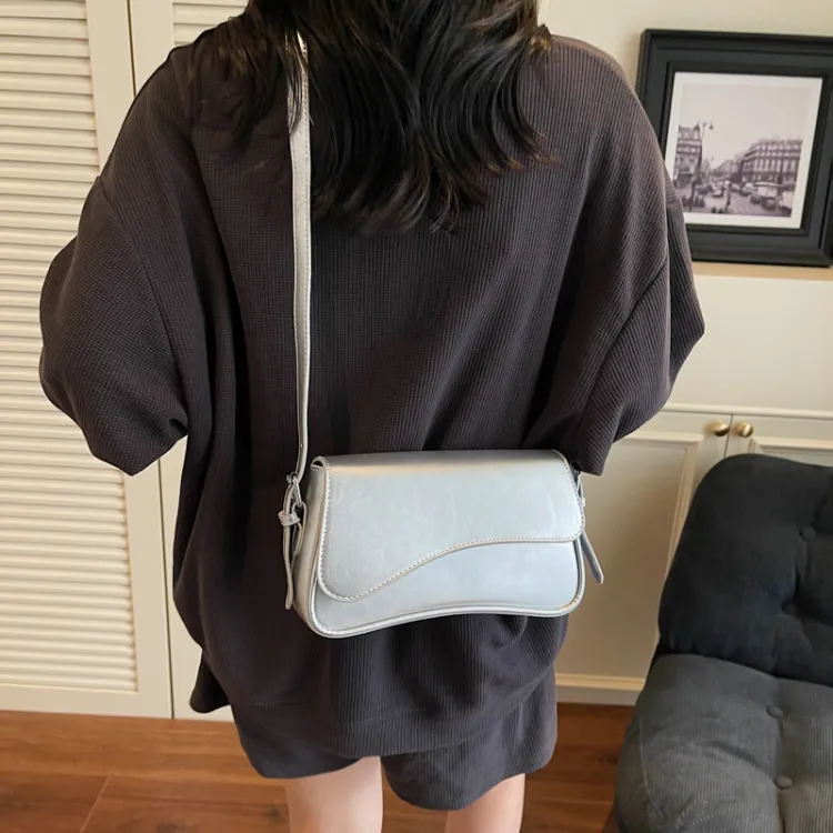 LOUIS ROYALN PU 겨드랑이 크로스백 여성 화이트/실버/블랙/카키/다크 브라운/커피 - POIZON