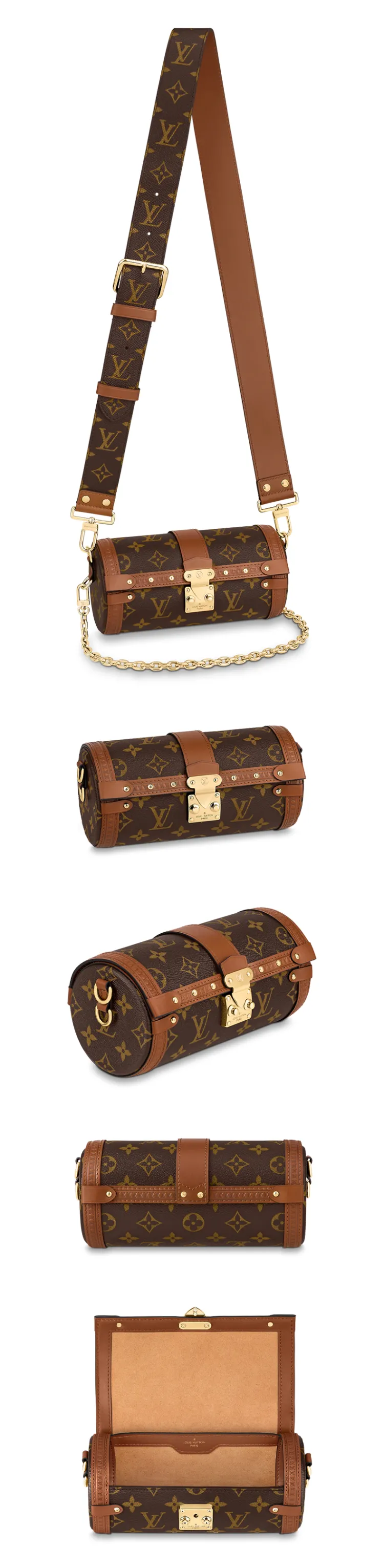 LOUIS VUITTON Papillon 트렁크 코팅 캔버스 가죽 포함 트림 숄더 백, 핸드백, 숄더 백, 크로스백 여성 브라운 - POIZON