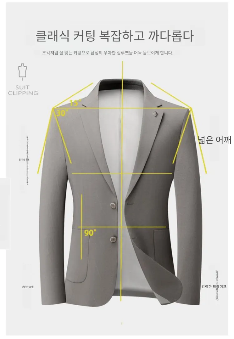 가슴둘레: 104cm 가슴둘레: 90-94cm 총장: 71cm 소매 길이: 61cm