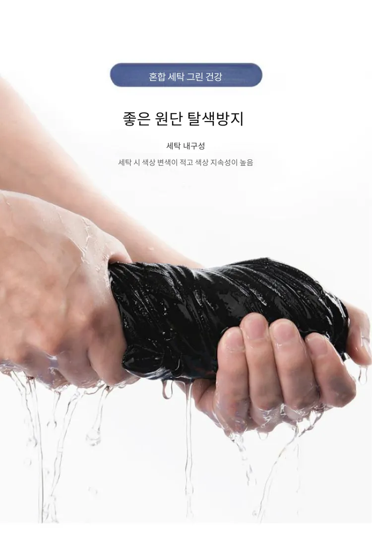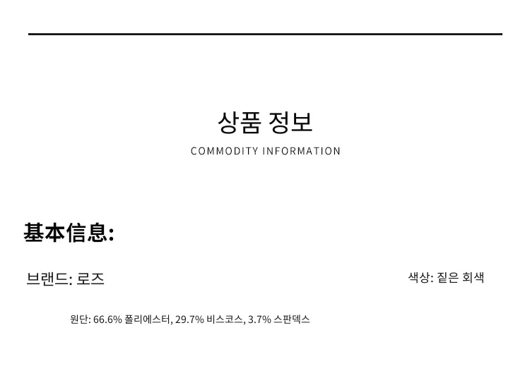 66.6% 폴리에스테르, 29.7% 비스코스, 3.7% 엘라스테인