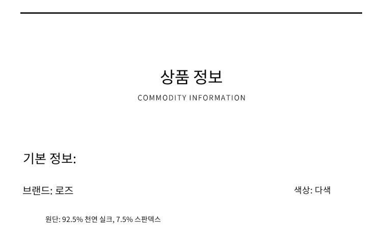 92.5% 뽕나무 실크, 7.5% 엘라스테인